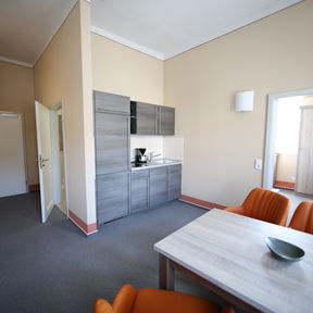 Diese Ferienwohnung liegt im 1. Obergeschoß. Sie bietet bis zu 3 Urlaubern Platz für einen entspannten Aufenthalt. Neben dem geräumigen Küchenbereich mit Essplatz gehören 2 separate Schlafzimmer zur Wohnung.